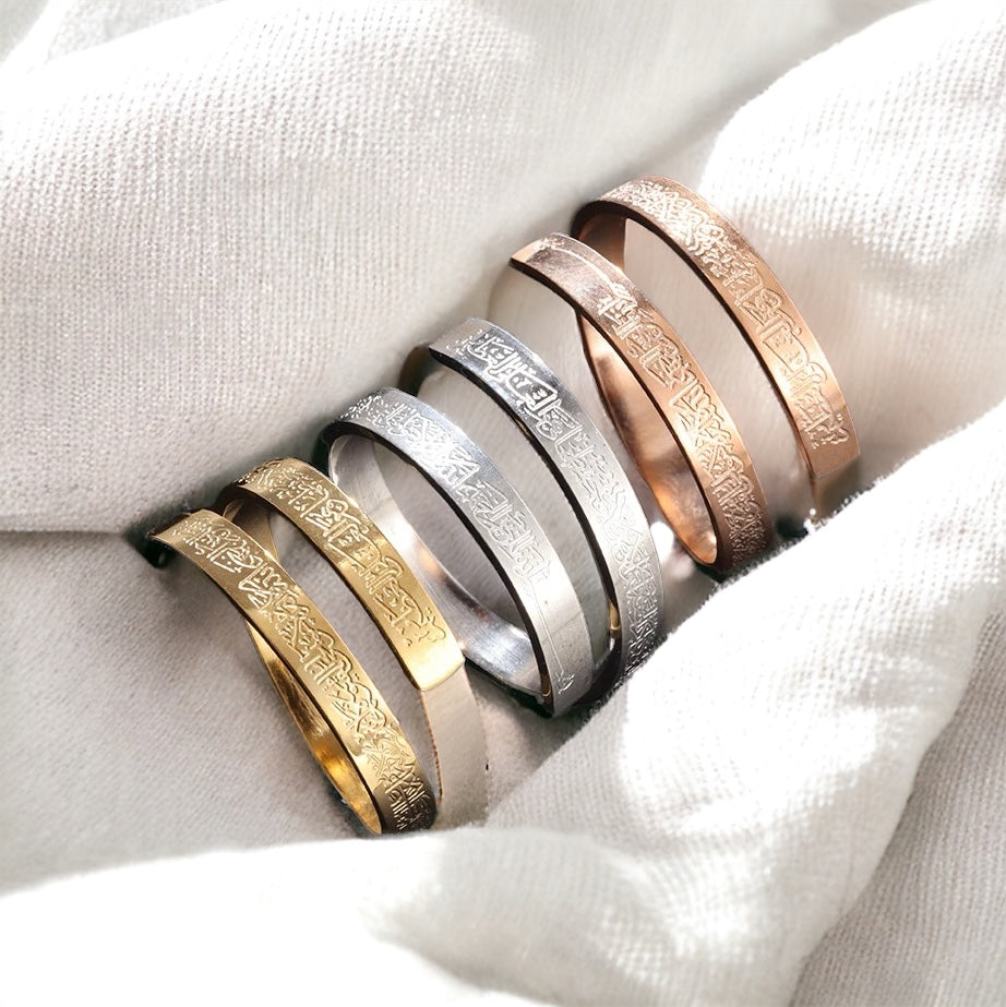 The ring features a unique spiral design that will catch the eye of anyone who sees it. The Ayatul Kursi engraving on the inside of the ring adds an extra touch of elegance and meaning to this already beautiful piece.